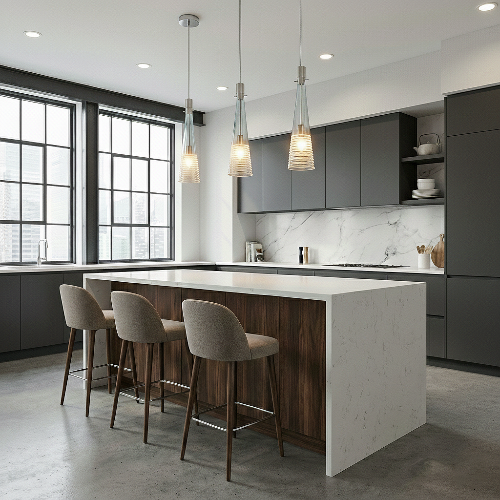 Add a touch of glamour to your space with this modern designer 1-light chandelier pendant. The combination of glass and white etched accents creates a unique and eye-catching design, making it perfect for a modern living room, dining room, kitchen island, contemporary bedroom, or stylish entryway.
