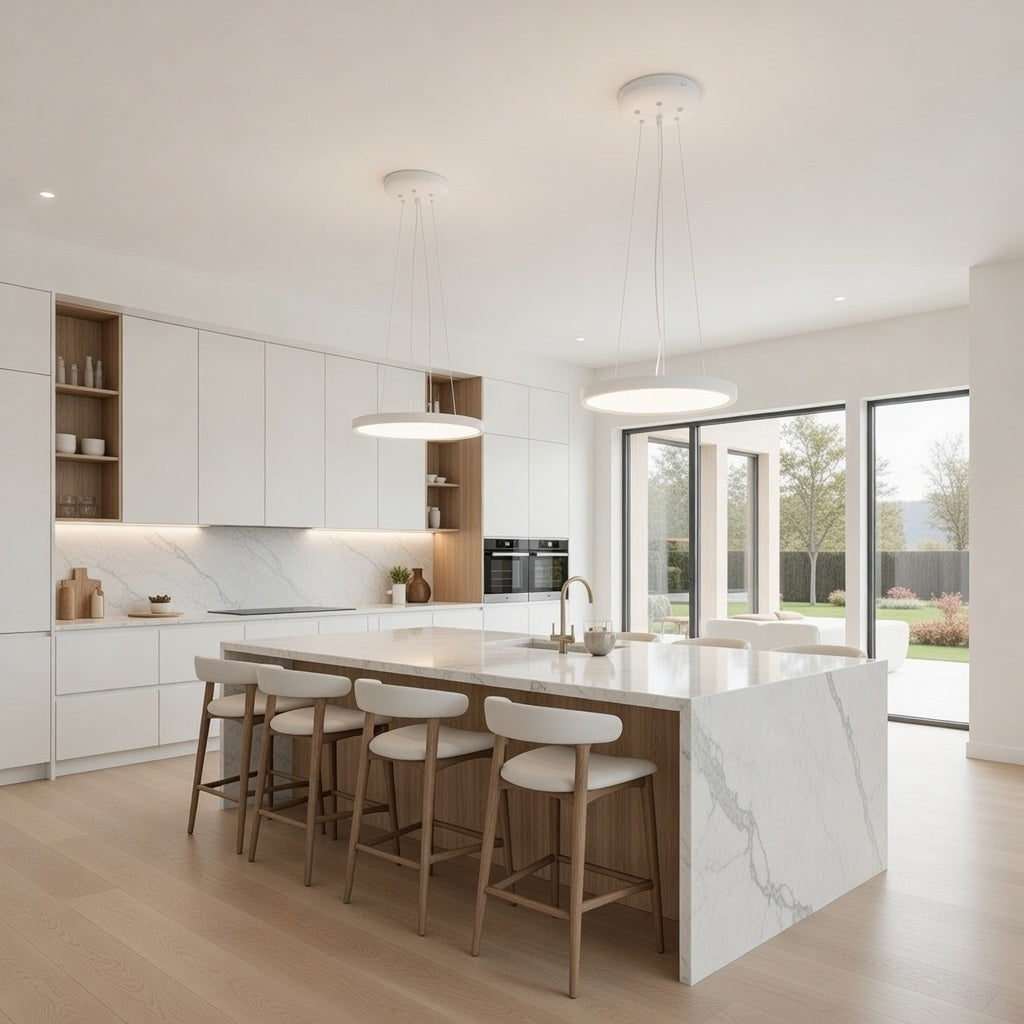 Crafted in a pristine white finish, the Halo Luxe Pendant complements a wide range of interiors- from ultra-modern to Scandinavian-inspired designs - enhancing the space without overwhelming it.