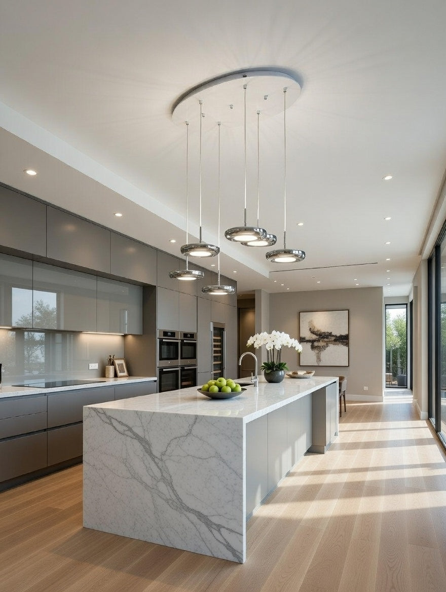Precision Illumination: Each disc features high-efficiency LED technology, providing crisp, downward task lighting while casting a soft, decorative glow upward against the ceiling.